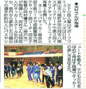 2014年1月 | 森山泰行氏サッカー教室開催。(一社)常願寺川公園スポーツクラ ブとの共催。 |