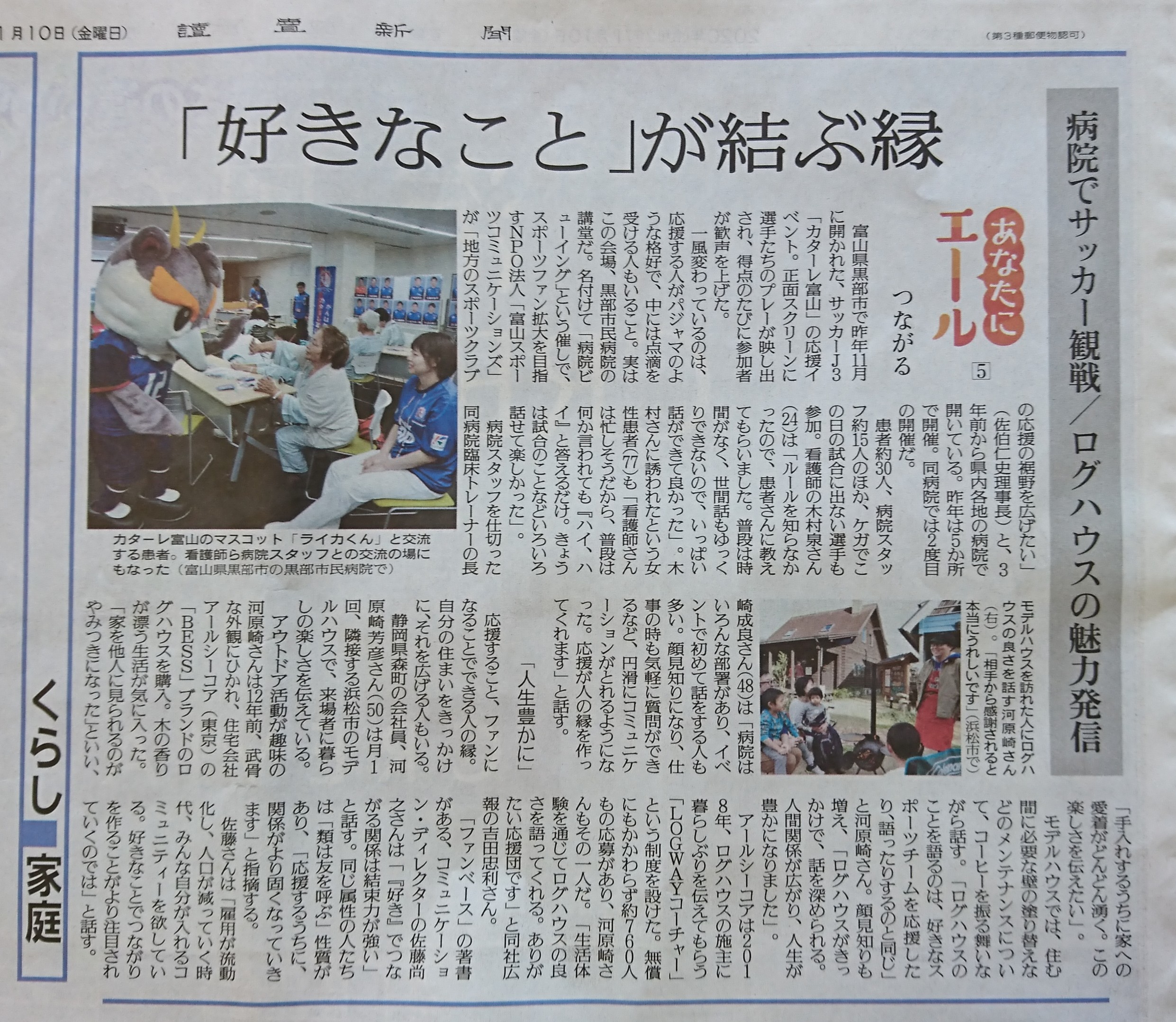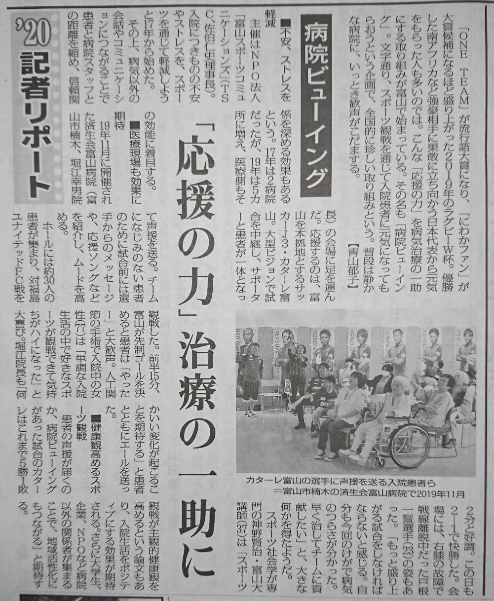 2020.1.20 「応援の力 治療の一助に」毎日新聞(富山)