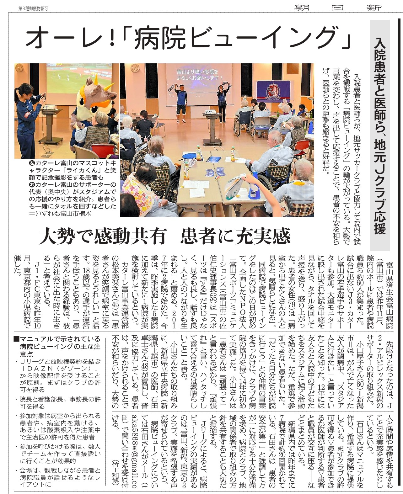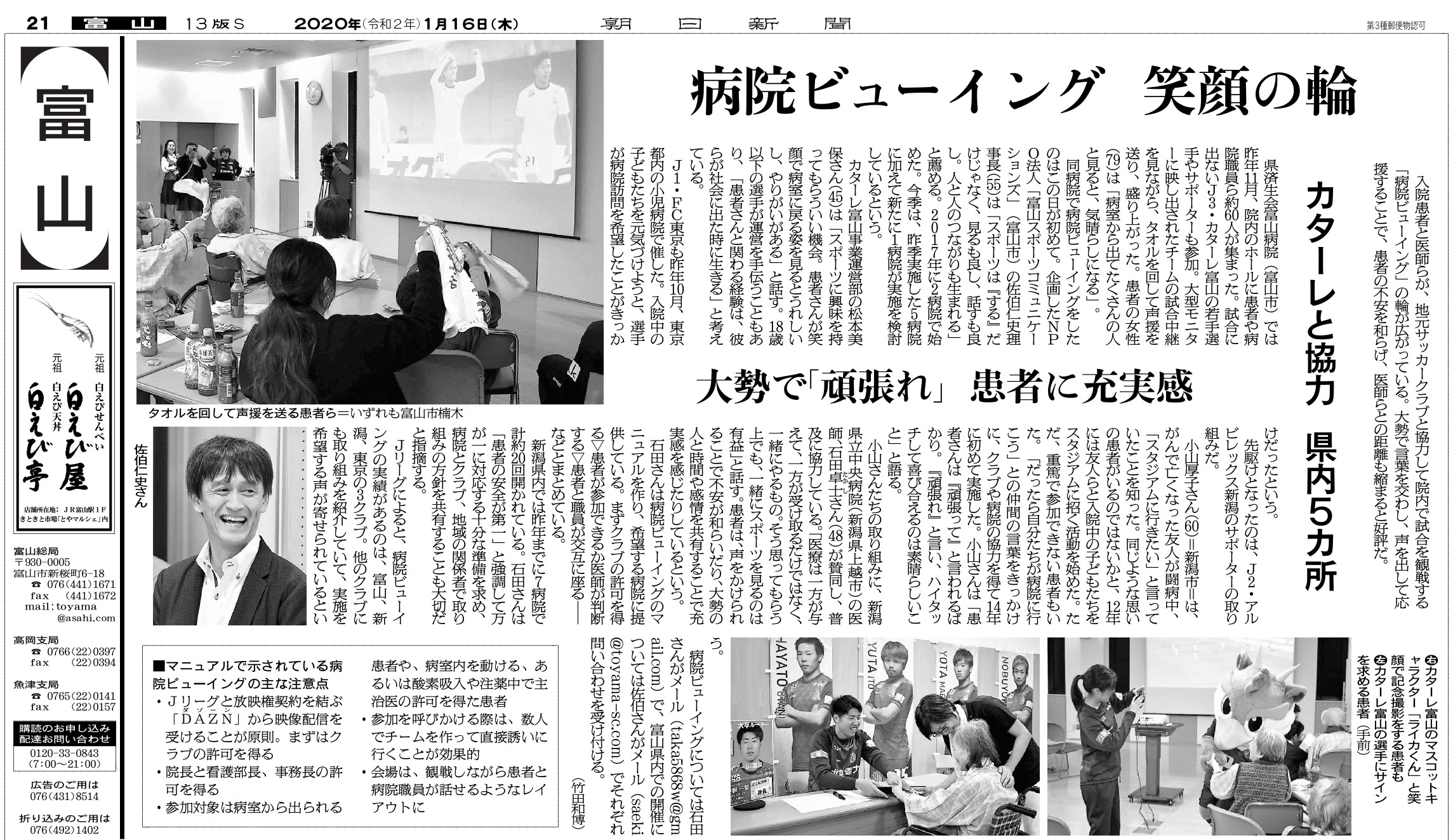 2020.1.16「病院ビューイング笑顔の輪」朝日新聞(富山)