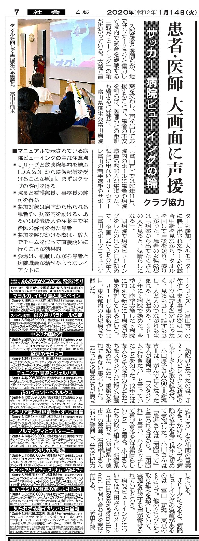 2020.1.14 「サッカー病院ビューイング」朝日新聞(東京)